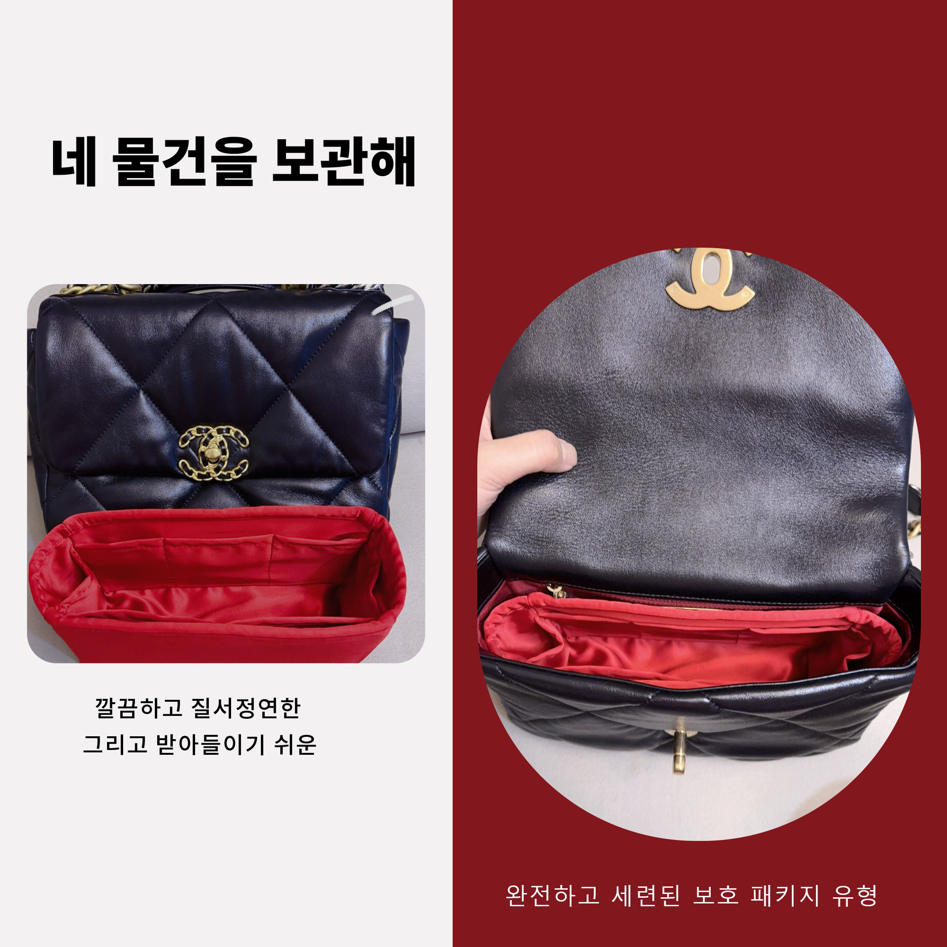 DGAZ는 Chanel 19bag 수입 고급 비단 안감 가방 수납 정리에 적합합니다(루주 까삭)