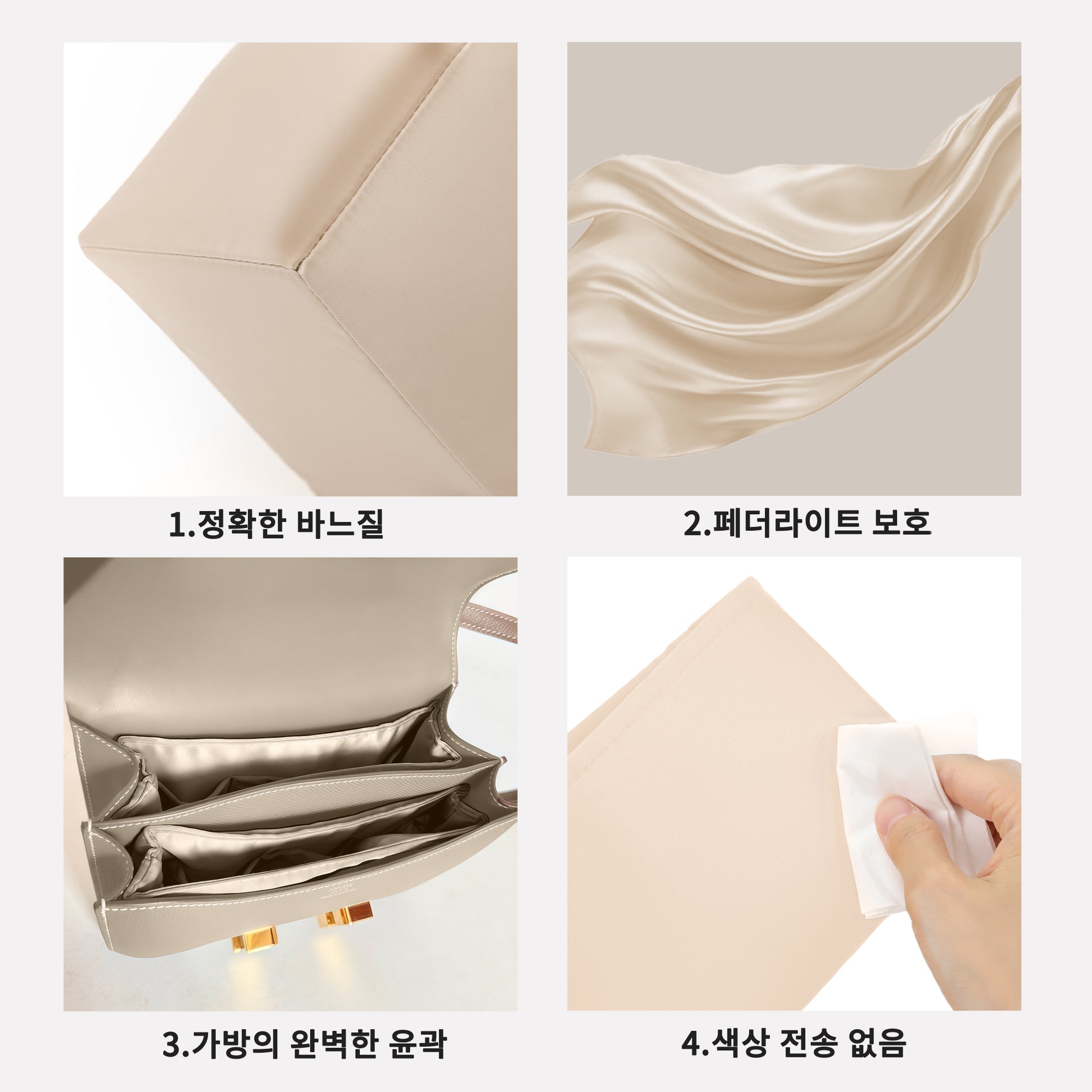 고급 디자인: 프리미엄 새틴 랩을 사용하는 우리의 가방 셰이퍼, 모든 디테일은 수작업으로 제작되며, 색상 손실이 없고, 실크처럼 매끄러운 표면으로 오랫동안 보관할 때 긁힘을 피할 수 있습니다. 당신의 소중한 가방이 마땅히 받아야 할 모양을 유지하도록 하세요.