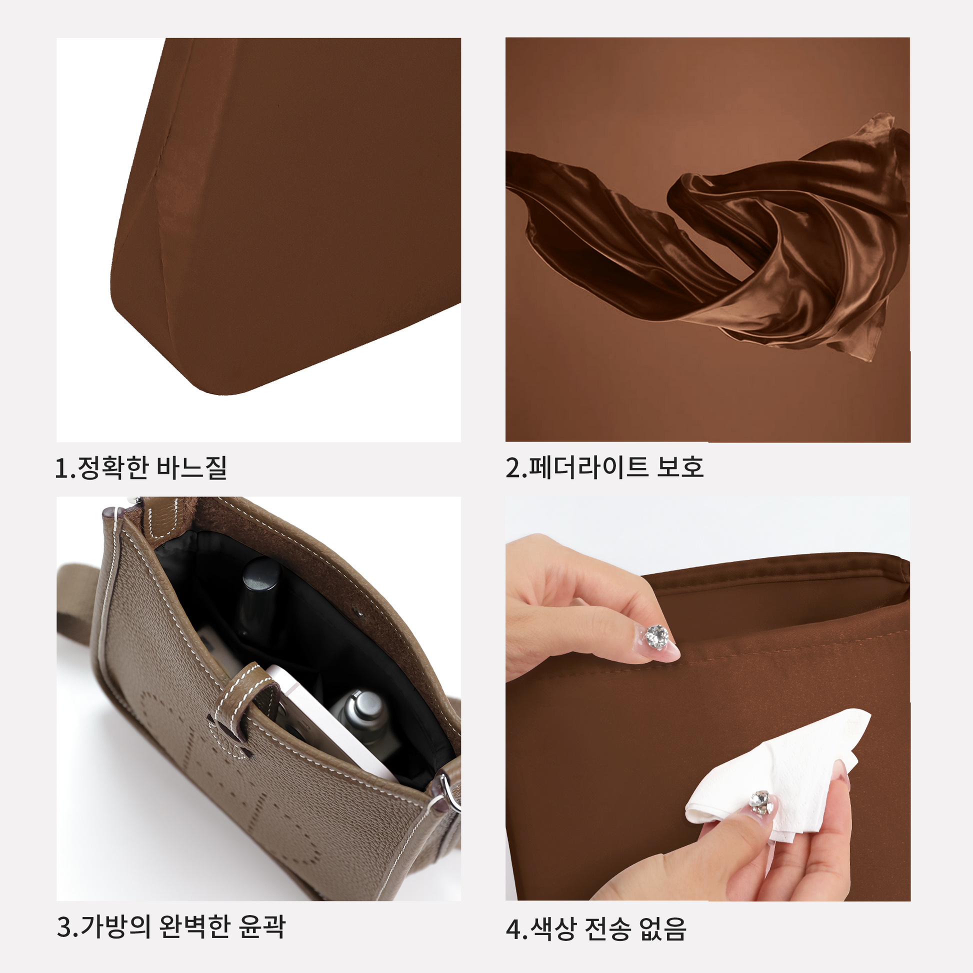 고급 디자인: 프리미엄 새틴 랩을 사용하는 우리의 가방 셰이퍼, 모든 디테일은 수작업으로 제작되며, 색상 손실이 없고, 실크처럼 매끄러운 표면으로 오랫동안 보관할 때 긁힘을 피할 수 있습니다. 당신의 소중한 가방이 마땅히 받아야 할 모양을 유지하도록 하세요.
