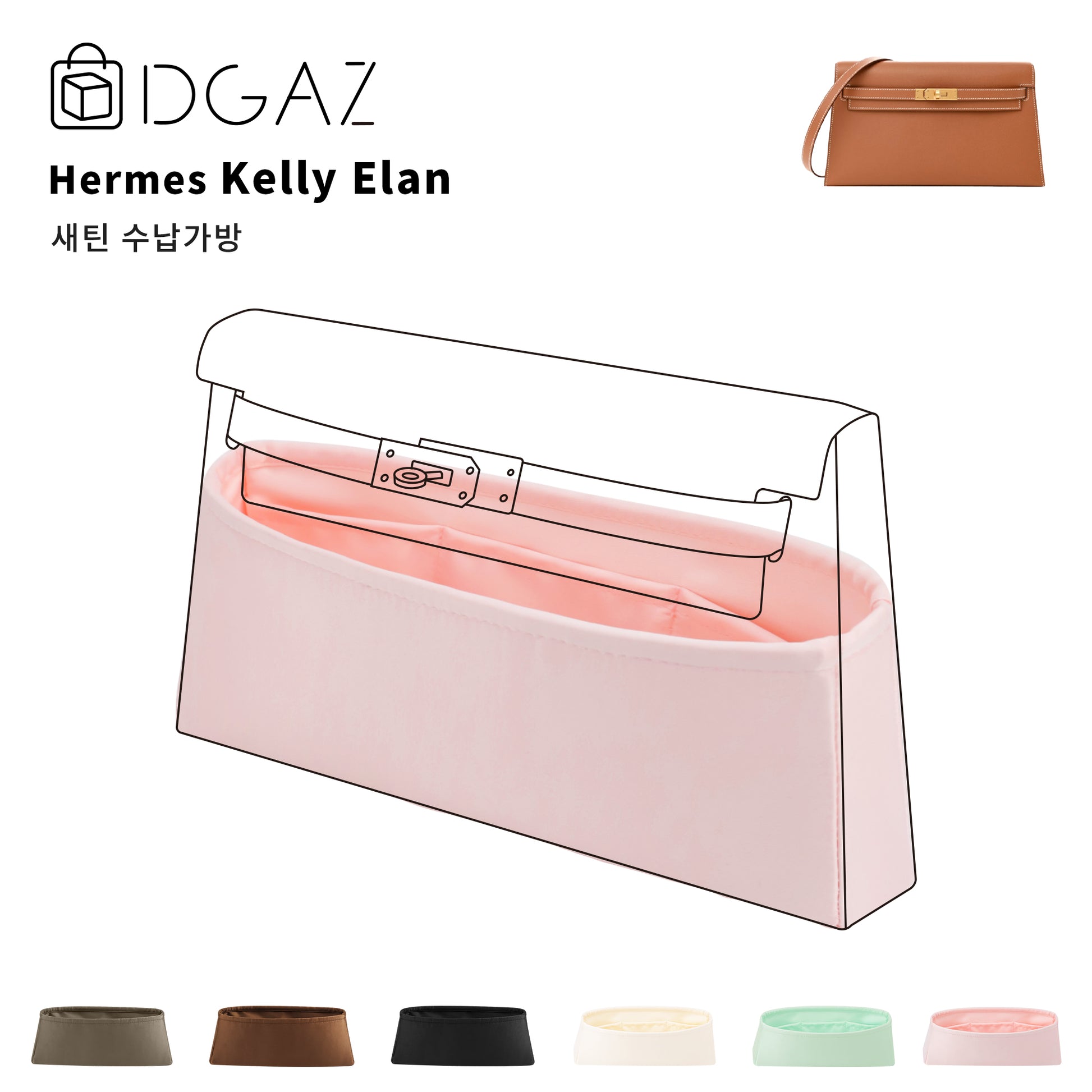 DGAZ는 Hermes Kelly Elan 수입 고급 비단 안감 가방 수납 정리에 적합합니다(로즈 사쿠라)