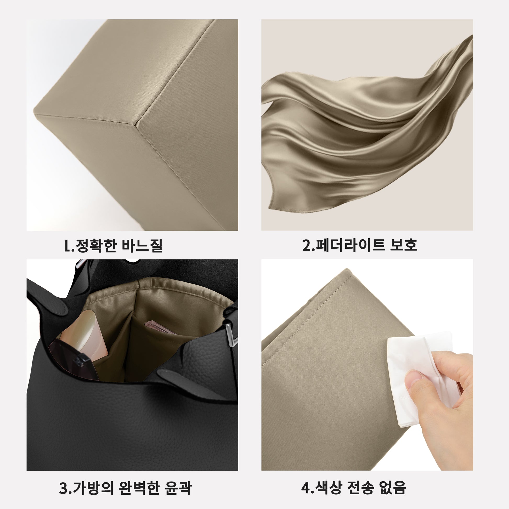 고급 디자인: 프리미엄 새틴 랩을 사용하는 우리의 가방 셰이퍼, 모든 디테일은 수작업으로 제작되며, 색상 손실이 없고, 실크처럼 매끄러운 표면으로 오랫동안 보관할 때 긁힘을 피할 수 있습니다. 당신의 소중한 가방이 마땅히 받아야 할 모양을 유지하도록 하세요.