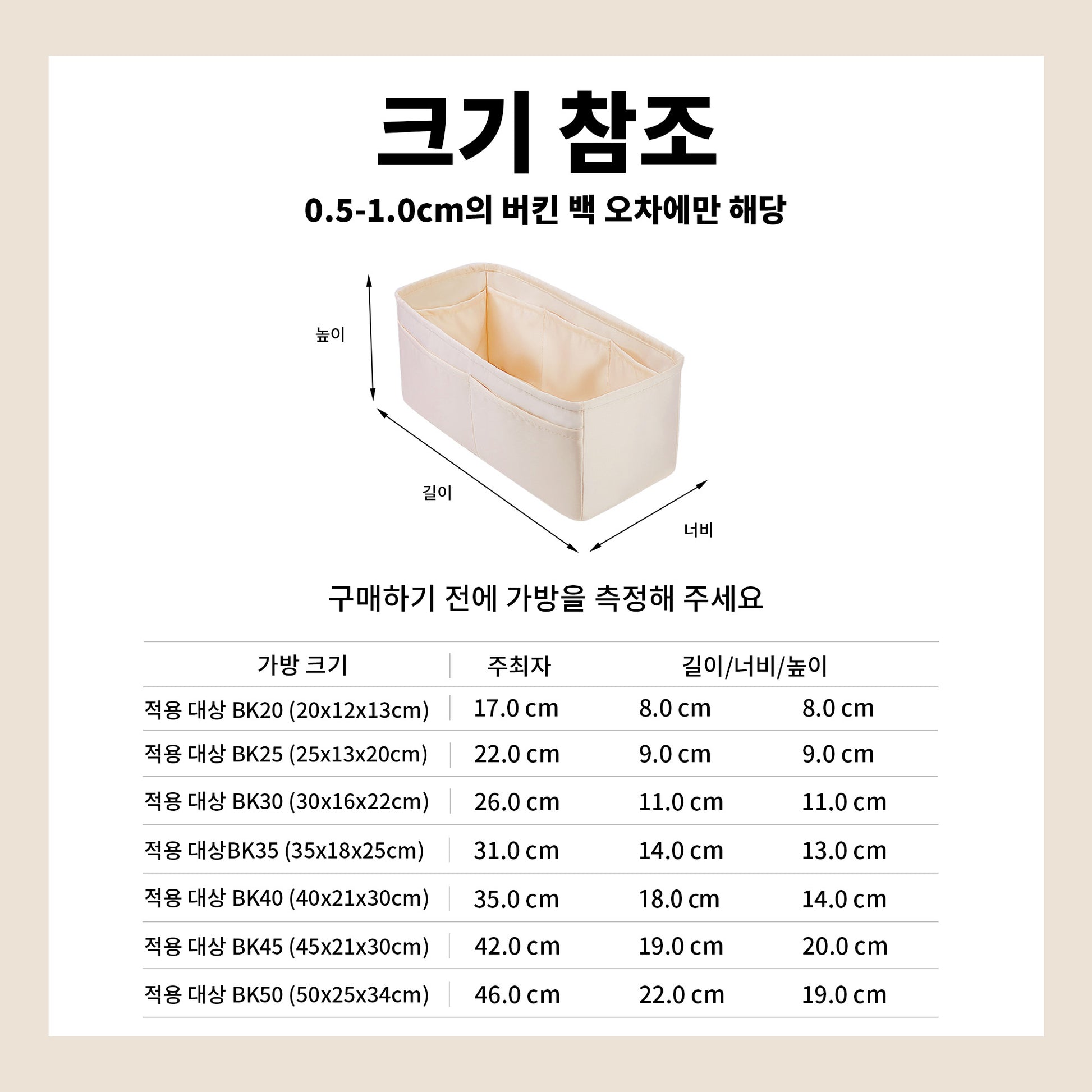 크기 및 색상: Birkin 25/30/35/40/45/50 가방에 적합하며, 구매 시 가방에 해당하는 스타일을 선택하십시오; 색상: 다양한 색상을 사용할 수 있으며, 얼룩에 강하고 내구성이 있으며, 우리의 셰이퍼는 친구들과 함께 가방 왕국을 보여줄 때 고급을 강조할 수 있습니다.