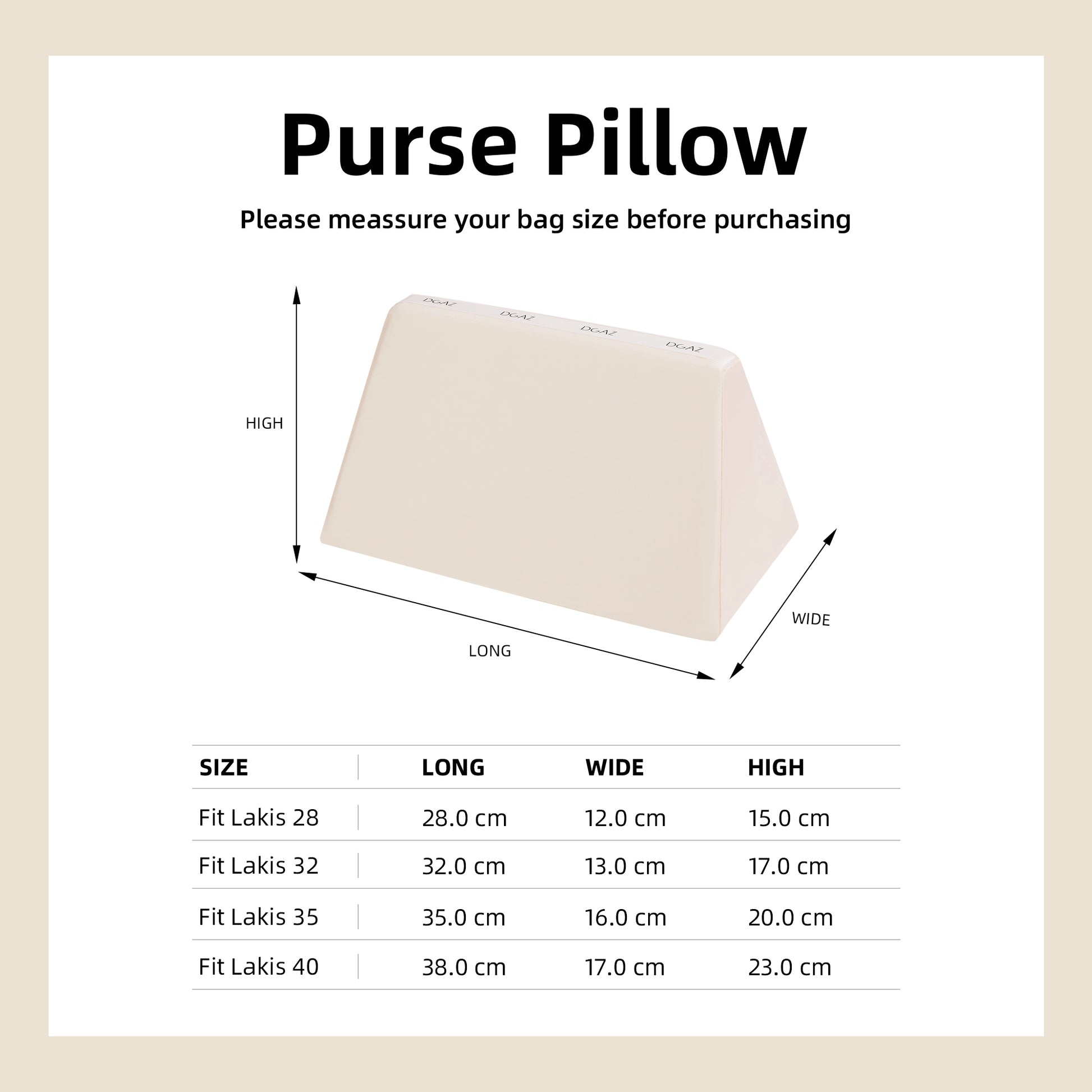 DGAZ Purse Pillow Shaper Insert for Hermes Lakis Bags, Silky Pillow Shaper for Luxury Handbags