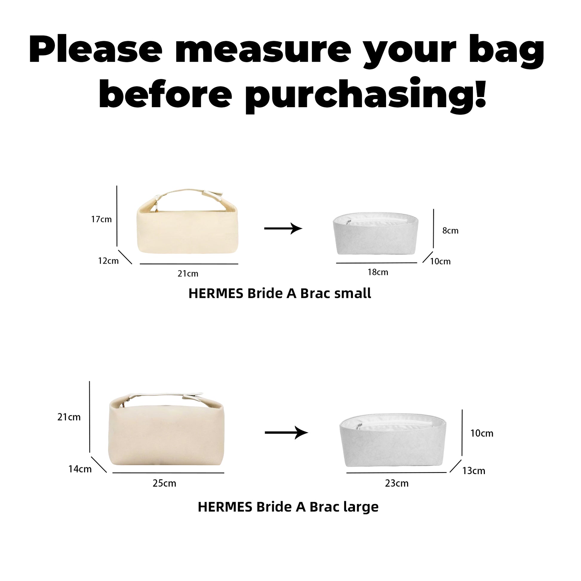 - Purchase Notice: Please measure the internal dimensions of your handbag before purchasing, confirm the bag model, and then refer to the size chart for selection to avoid confusion caused by choosing the wrong size.