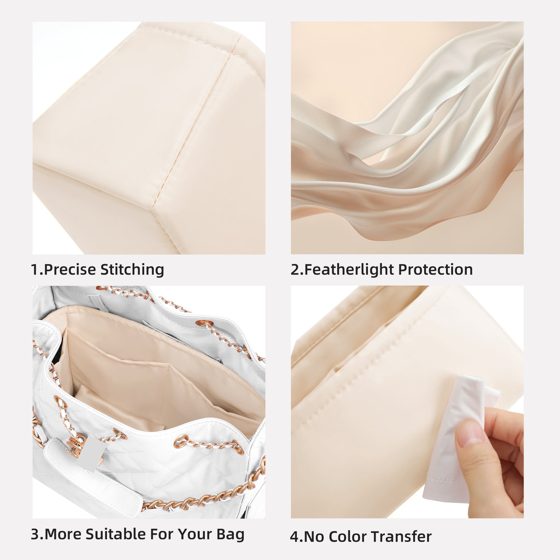 - High-grade material: our handbag organizer is made of high-grade silk, silky feel, lightweight, soft and firm, satin bag organizer can easily support the bag and does not leave traces; precious bag is the need for a matching partner, out of communication more highlight the consistent internal and external noble.