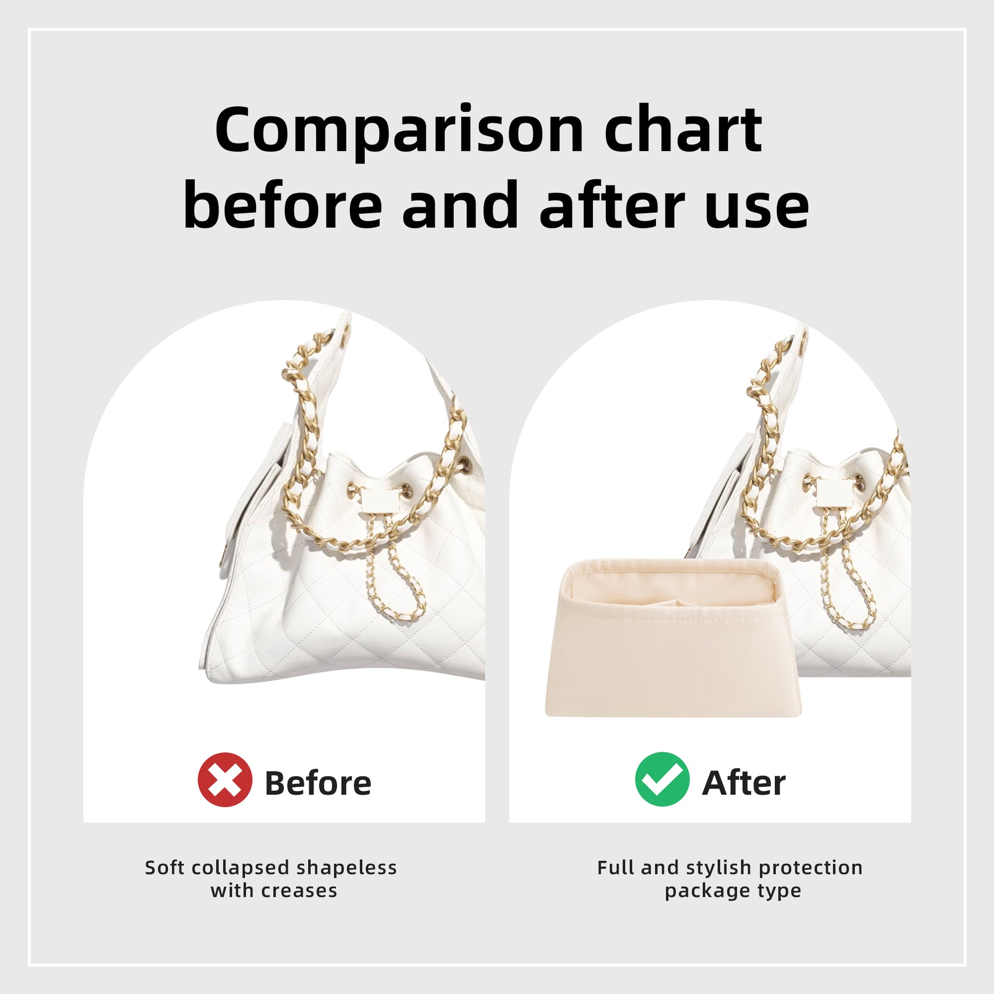 - Handbag essential care tools: in the care of our precious bags, if there is no inner bag, the inside of the bag will be easy to keys, cosmetics and other hard objects broken; if you choose improper material purse organizer insert for handbags, long time use so that luxury jewelry bags bring irreversible damage.