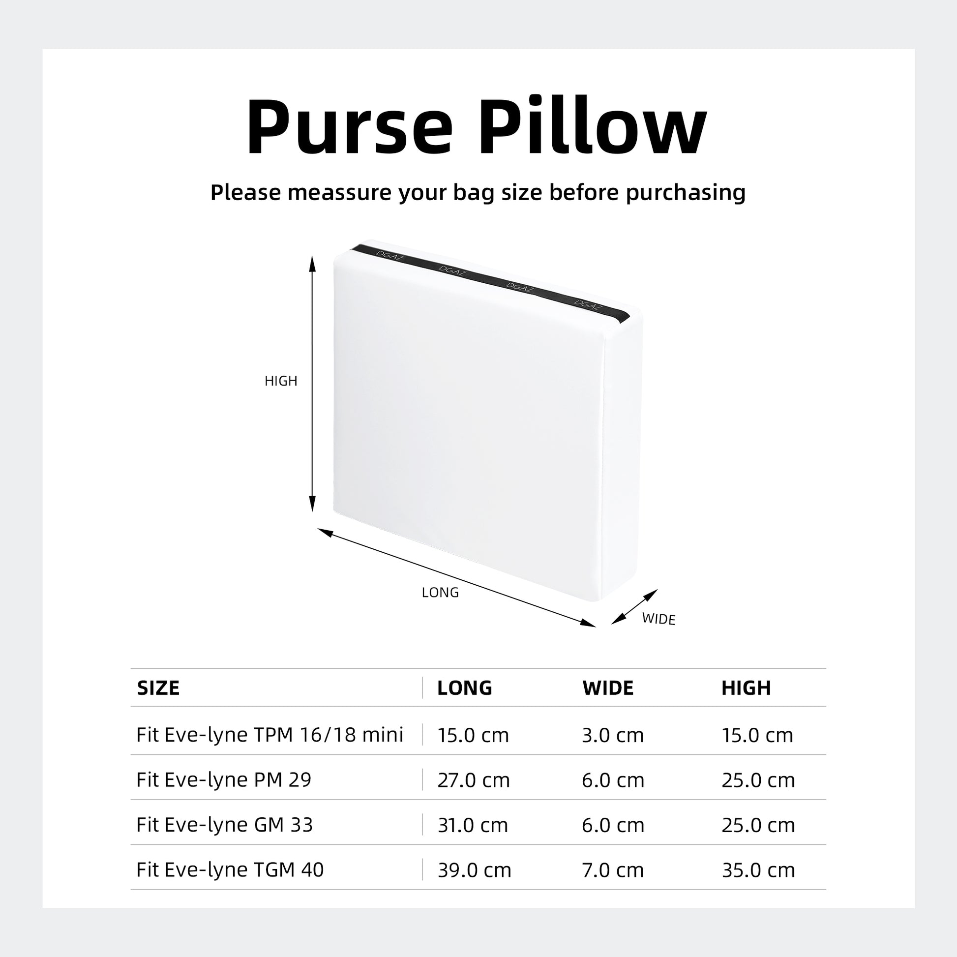 DGAZ Purse Pillow Shaper Insert for Hermes Evelyne TPM/PM/GM/TGM Bags, Silky Pillow Shaper for Luxury Handbags