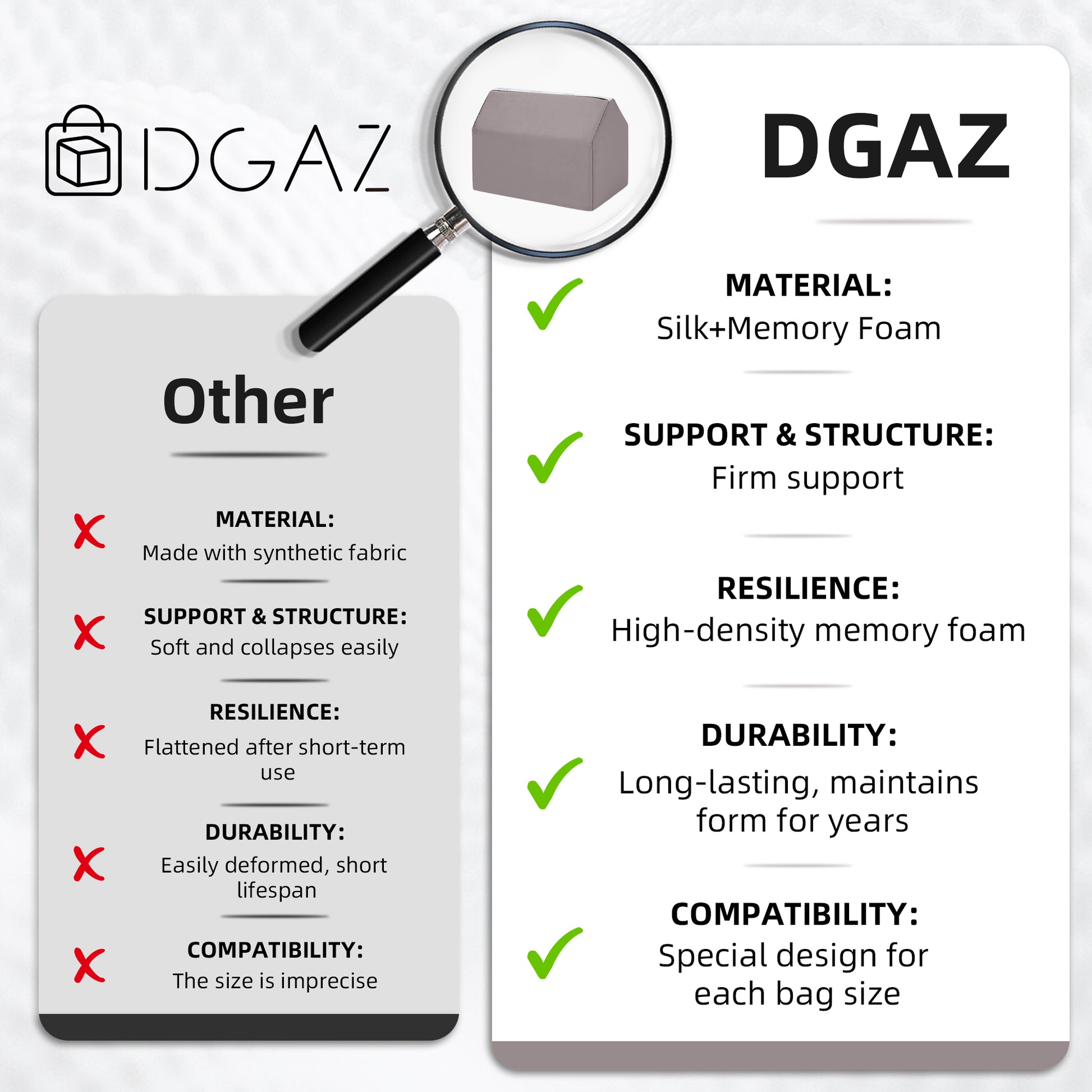 - Warranty and other items: All our DGAZ Handbag Shaper. come with a 1 year worry-free warranty. If there is any problem, please contact us and we will try our best to do it within 24 hours. We guarantee 100% satisfactory after-sales service for this item.
