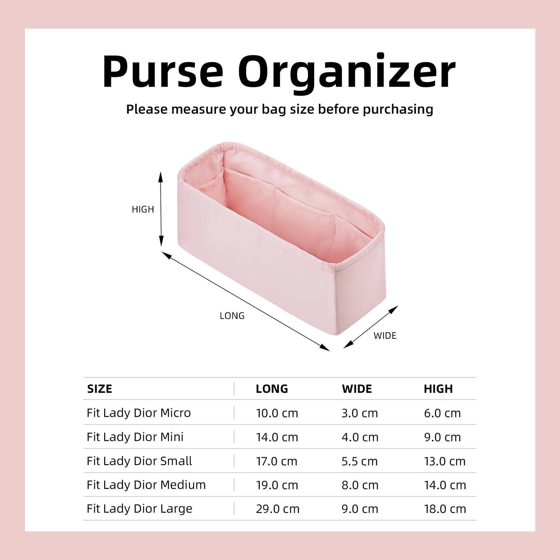 DGAZ Silk Purse Organizer Insert Fits Lady-Dior Micro/Mini/S/M/L bags,Silky Smooth Bag Organizer,Luxury Handbag & Tote Shaper